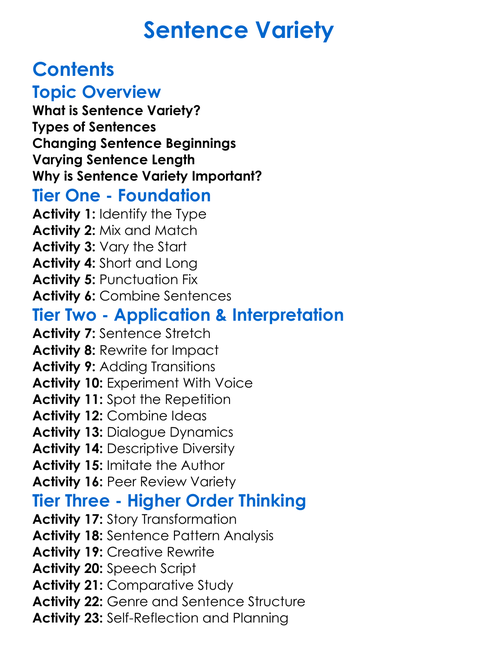 Sentence Variety Worksheet Activity Booklet