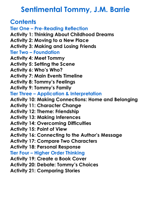Sentimental Tommy Jm Barrie Worksheet Activity Booklet