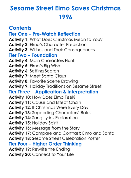 Sesame Street Elmo Saves Christmas 1996 Worksheet Activity Booklet