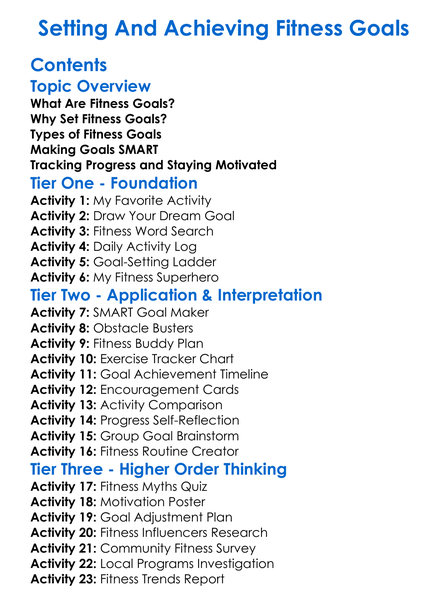 Setting And Achieving Fitness Goals Worksheet Activity Booklet