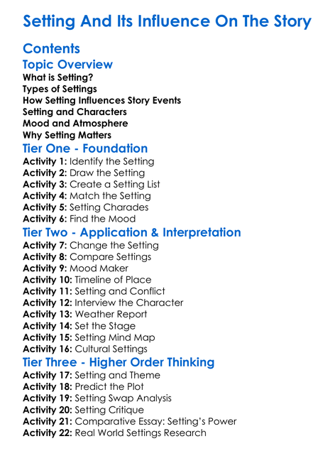 Setting And Its Influence On The Story Worksheet Activity Booklet