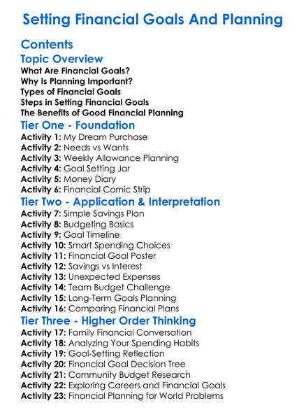 Setting Financial Goals And Planning Worksheet Activity Booklet
