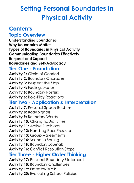Setting Personal Boundaries In Physical Activity Worksheet Activity Booklet