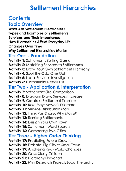 Settlement Hierarchies Worksheet Activity Booklet