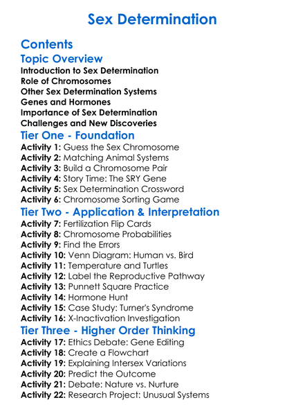 Sex Determination Worksheet Activity Booklet