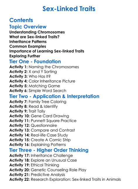 Sex-Linked Traits Worksheet Activity Booklet