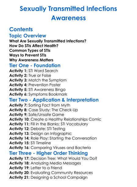 Sexually Transmitted Infections Awareness Worksheet Activity Booklet