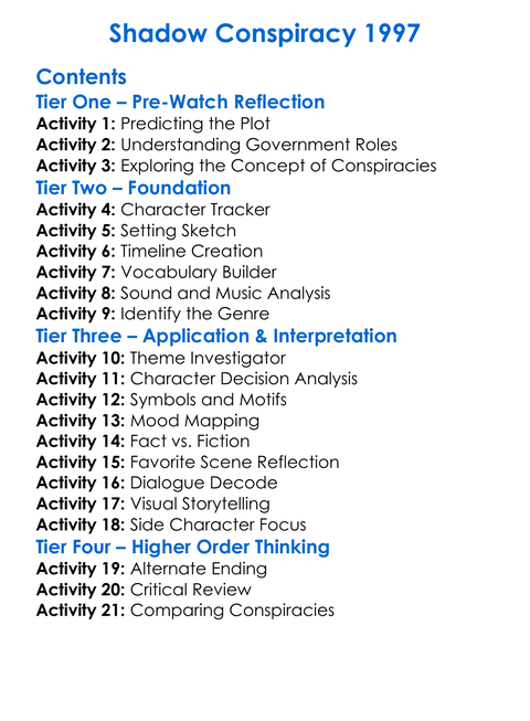 Shadow Conspiracy 1997 Worksheet Activity Booklet