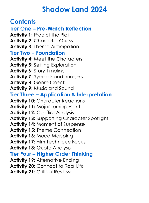 Shadow Land 2024 Worksheet Activity Booklet