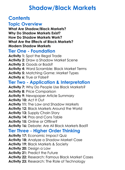 Shadowblack Markets Worksheet Activity Booklet