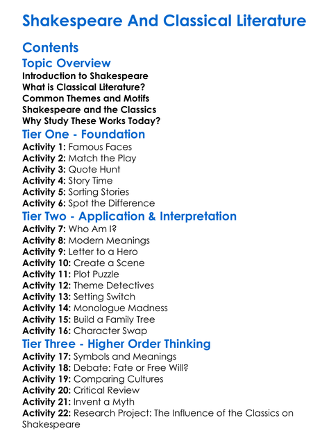 Shakespeare And Classical Literature Worksheet Activity Booklet