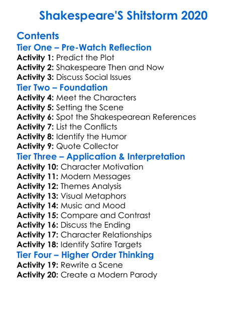 Shakespeares Shitstorm 2020 Worksheet Activity Booklet