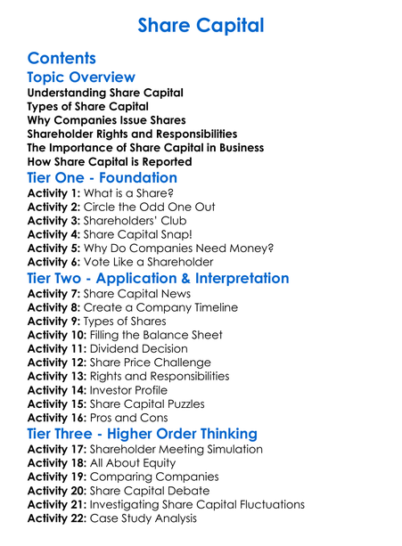Share Capital Worksheet Activity Booklet