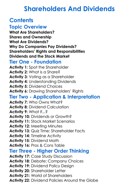 Shareholders And Dividends Worksheet Activity Booklet