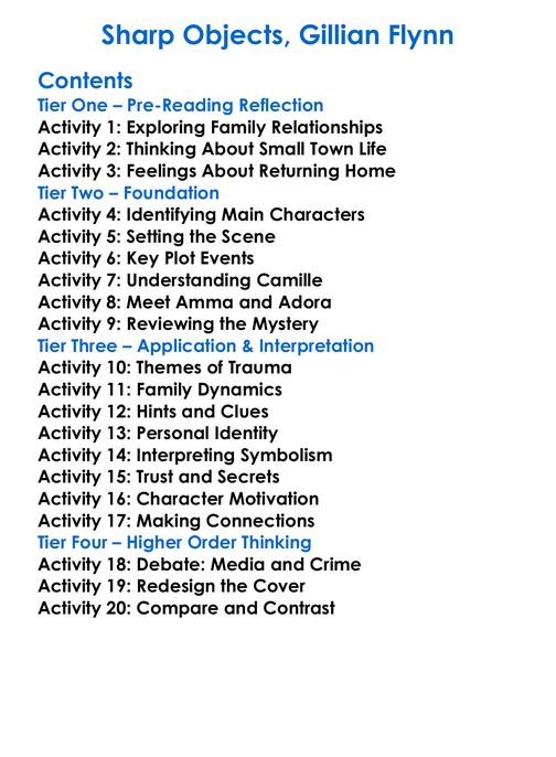 Sharp Objects Gillian Flynn Worksheet Activity Booklet