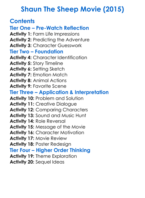 Shaun The Sheep Movie 2015 Worksheet Activity Booklet