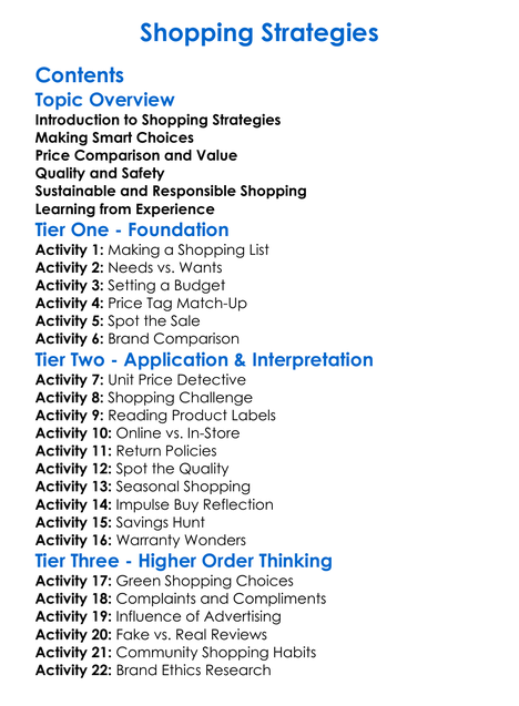 Shopping Strategies Worksheet Activity Booklet