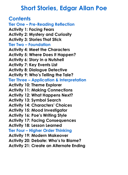 Short Stories Edgar Allan Poe Worksheet Activity Booklet