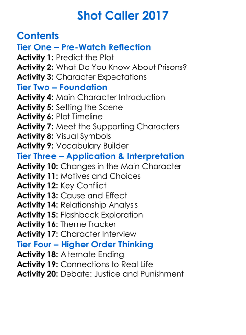 Shot Caller 2017 Worksheet Activity Booklet