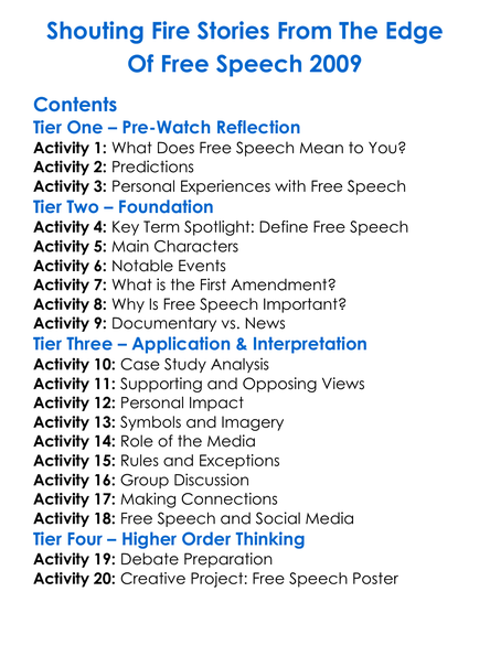Shouting Fire Stories From The Edge Of Free Speech 2009 Worksheet Activity Booklet