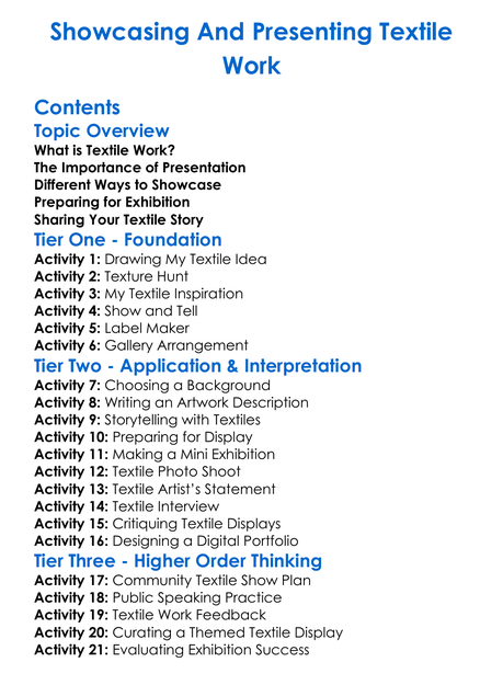 Showcasing And Presenting Textile Work Worksheet Activity Booklet
