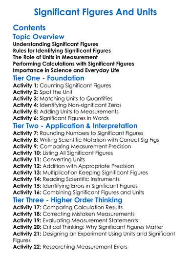 Significant Figures And Units Worksheet Activity Booklet
