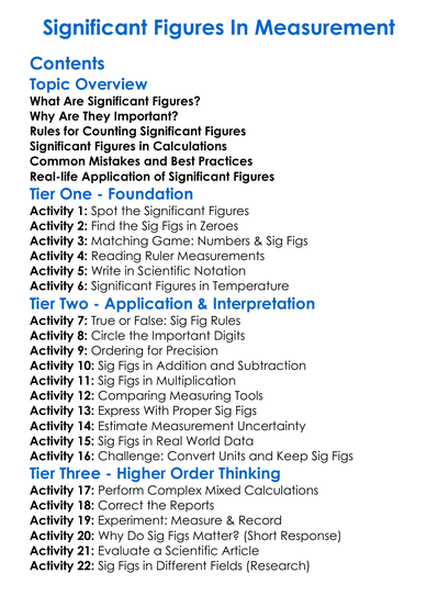 Significant Figures In Measurement Worksheet Activity Booklet