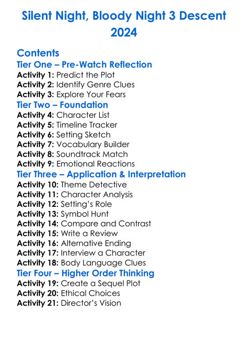 Silent Night Bloody Night 3 Descent 2024 Worksheet Activity Booklet