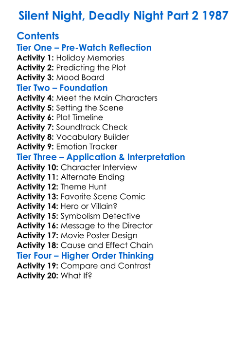 Silent Night Deadly Night Part 2 1987 Worksheet Activity Booklet