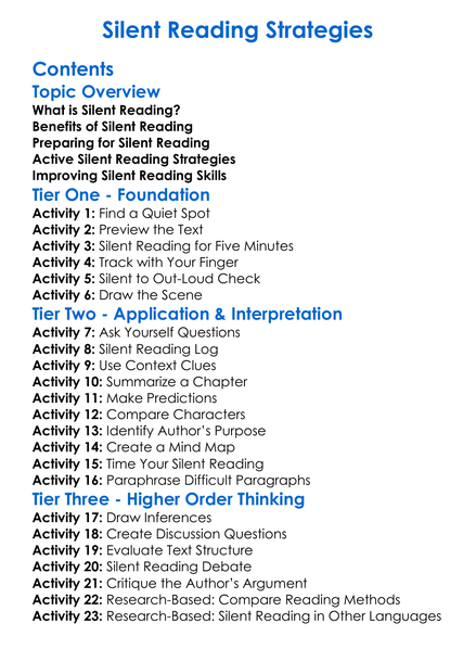 Silent Reading Strategies Worksheet Activity Booklet