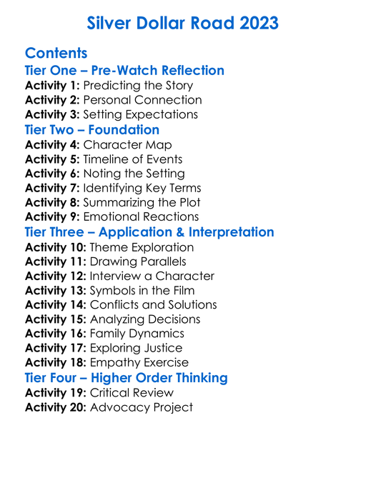 Silver Dollar Road 2023 Worksheet Activity Booklet