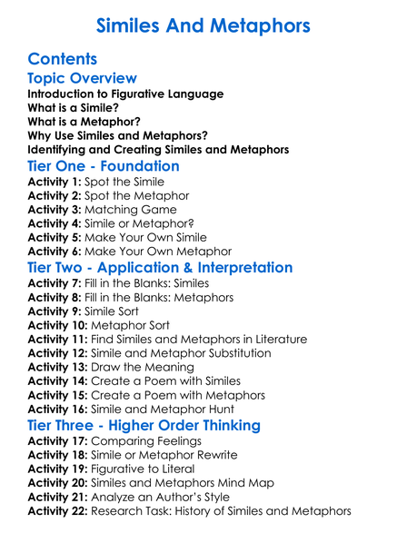 Similes And Metaphors Worksheet Activity Booklet