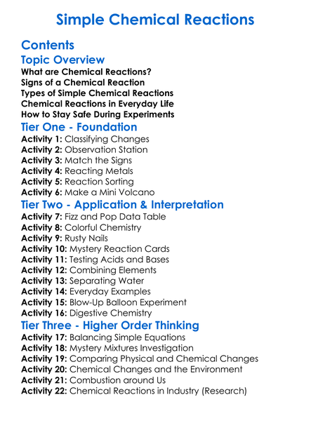 Simple Chemical Reactions Worksheet Activity Booklet
