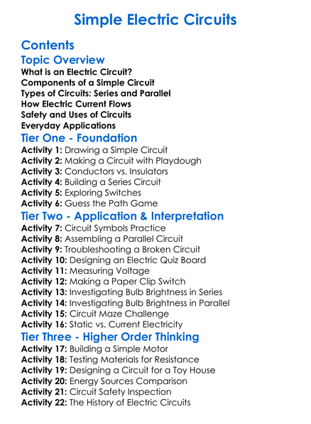 Simple Electric Circuits Worksheet Activity Booklet
