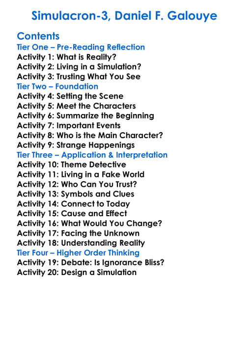 Simulacron-3 Daniel F Galouye Worksheet Activity Booklet