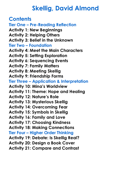 Skellig David Almond Worksheet Activity Booklet