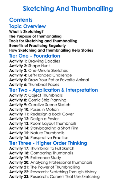 Sketching And Thumbnailing Worksheet Activity Booklet