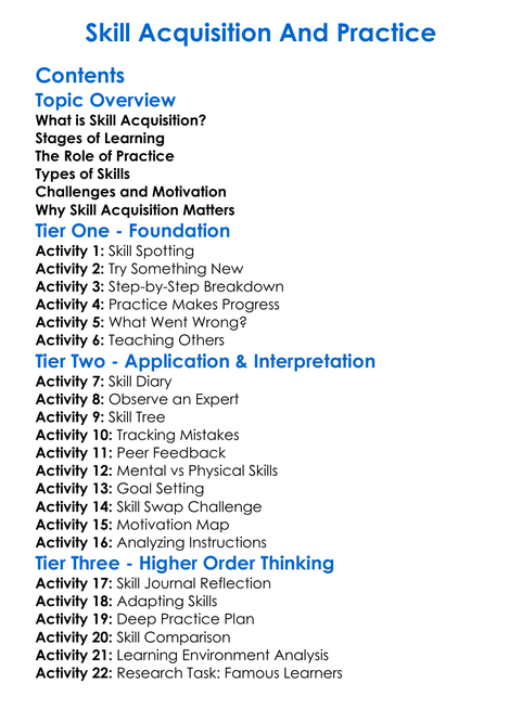 Skill Acquisition And Practice Worksheet Activity Booklet