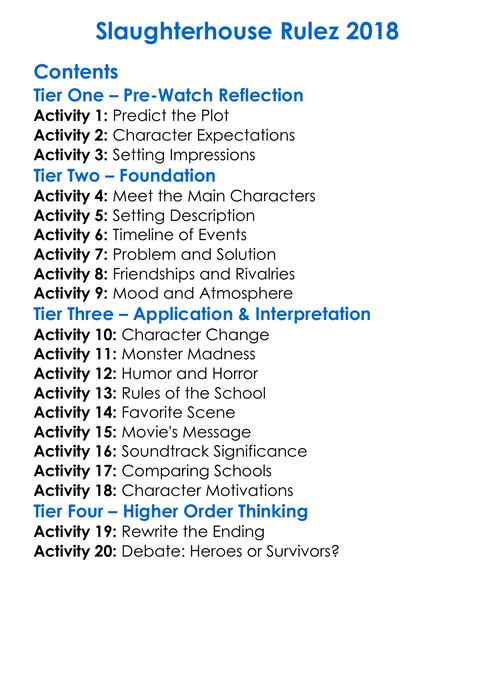 Slaughterhouse Rulez 2018 Worksheet Activity Booklet