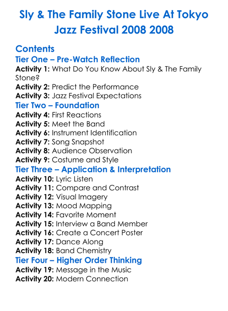 Sly The Family Stone Live At Tokyo Jazz Festival 2008 2008 Worksheet Activity Booklet