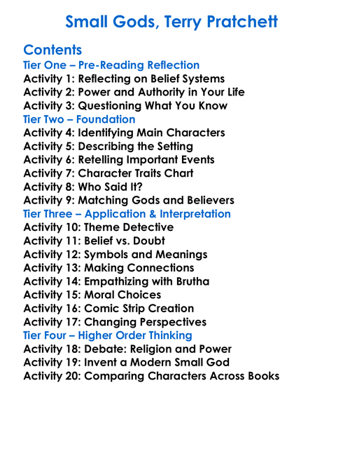 Small Gods Terry Pratchett Worksheet Activity Booklet