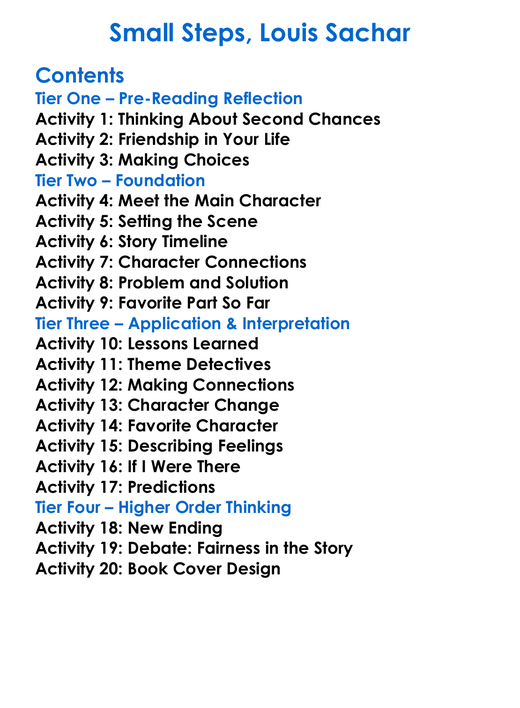 Small Steps Louis Sachar Worksheet Activity Booklet