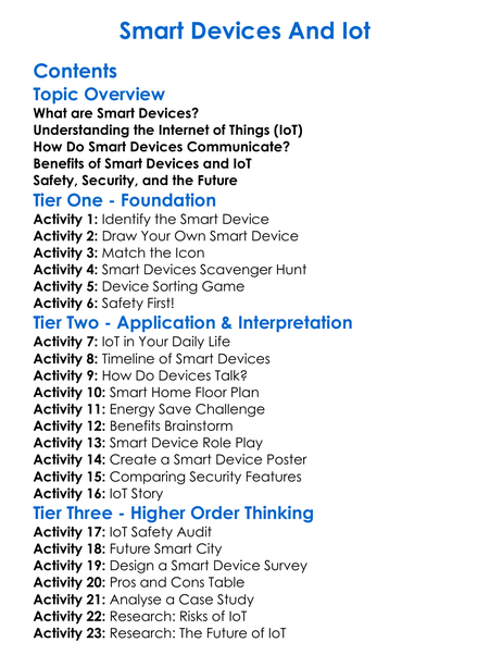 Smart Devices And Iot Worksheet Activity Booklet