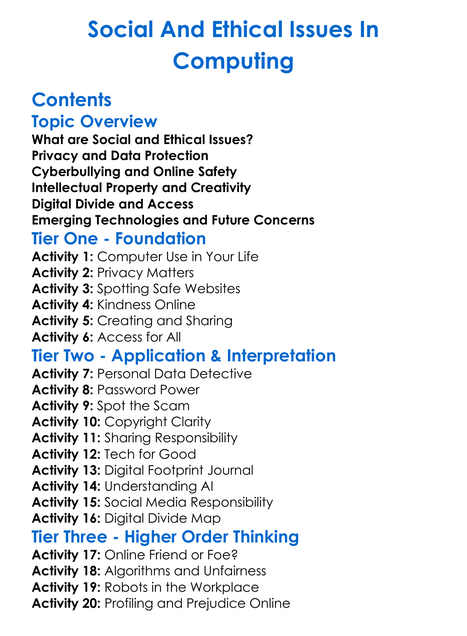 Social And Ethical Issues In Computing Worksheet Activity Booklet