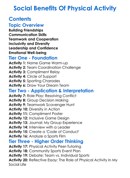 Social Benefits Of Physical Activity Worksheet Activity Booklet