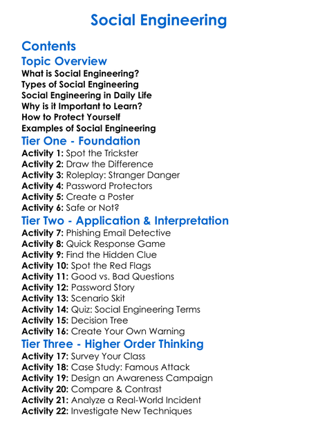 Social Engineering Worksheet Activity Booklet