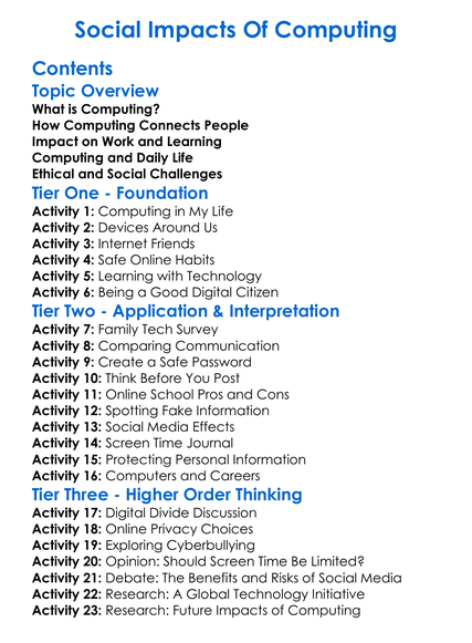 Social Impacts Of Computing Worksheet Activity Booklet