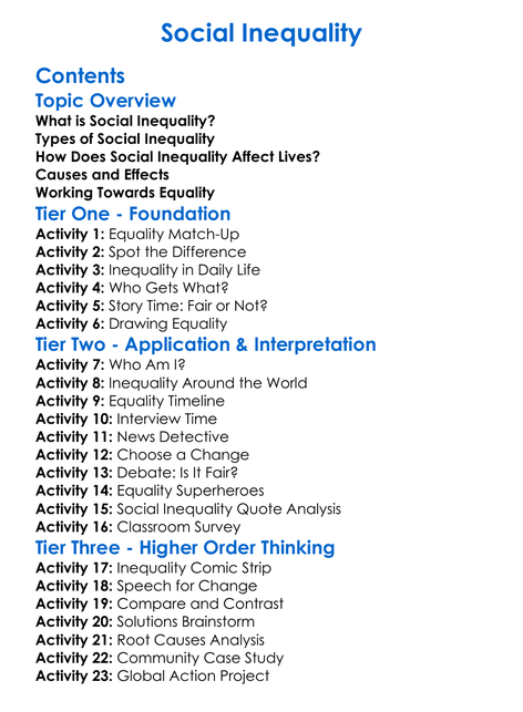 Social Inequality Worksheet Activity Booklet