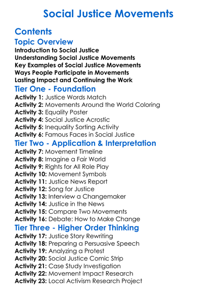 Social Justice Movements Worksheet Activity Booklet