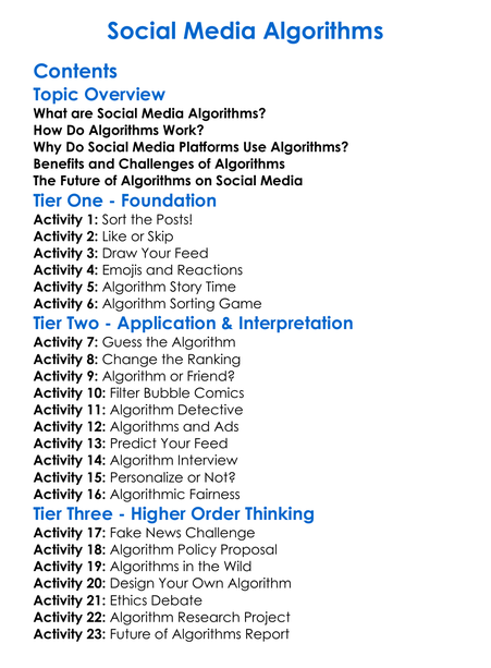 Social Media Algorithms Worksheet Activity Booklet